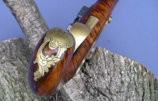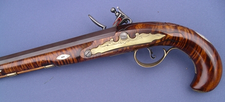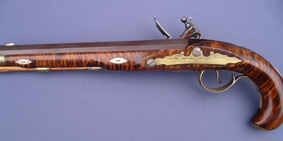 A pistol made in the Hagerstown School style. 10 in. Getz swamped barrel. Ditchburn pistol lock. |
