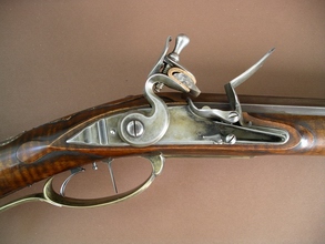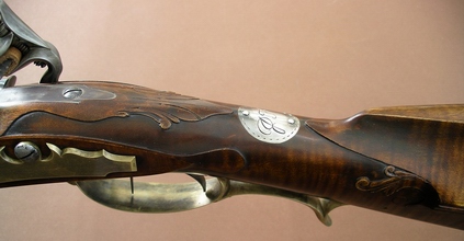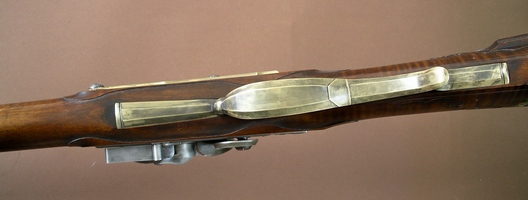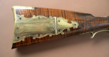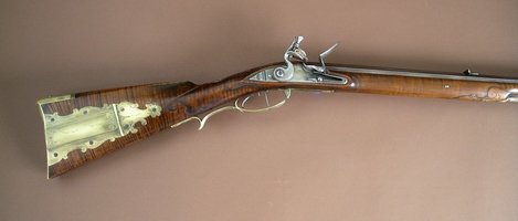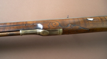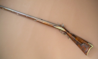 This rifle is made in the style of Jacob Dickert, Lancaster, about 1780. .54 CAL. swamped barrel, 1.08 IN. at the breech.